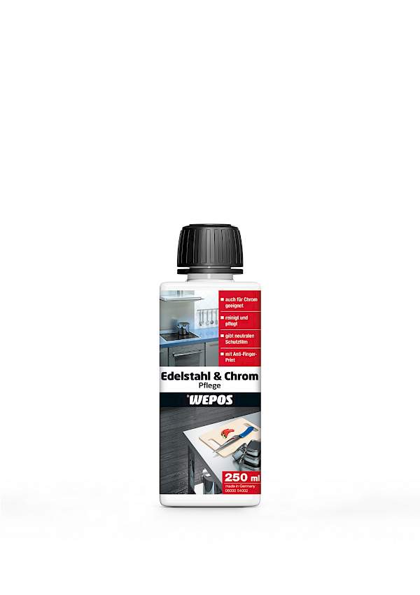 Reinigt und pflegt Edelstahl & Chrom Oberflächen nach der Reinigung. Edelstahlflächen erhalten eine gleichmäßige, mattglänzende, saubere Oberfläche. Reinigt, schützt und pflegt Edelstahl- und Chrom. Entfernt Gebrauchsspuren, Fingerabdrücke, Verfärbungen, fettige Verschmutzungen, Staub und Wasserflecken oder Kalkrückstände. Schützt Oberflächen vor Wiederanschmutzung und macht wasserabweisend. Konserviert, verhindert Korrosionsflecken ebenso wie Fingerspuren und -abdrücke.